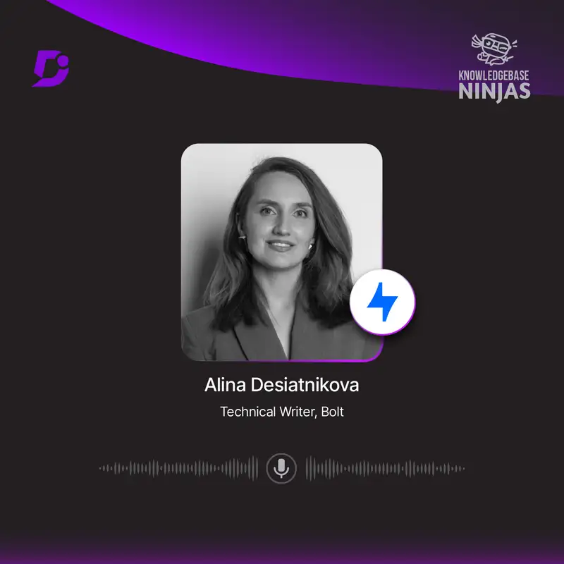 This episode of the Knowledge Base Ninjas Podcast, we have Alina Desiatnikova, Technical writer from Bolt, who shares her path from technical support to technical writ...